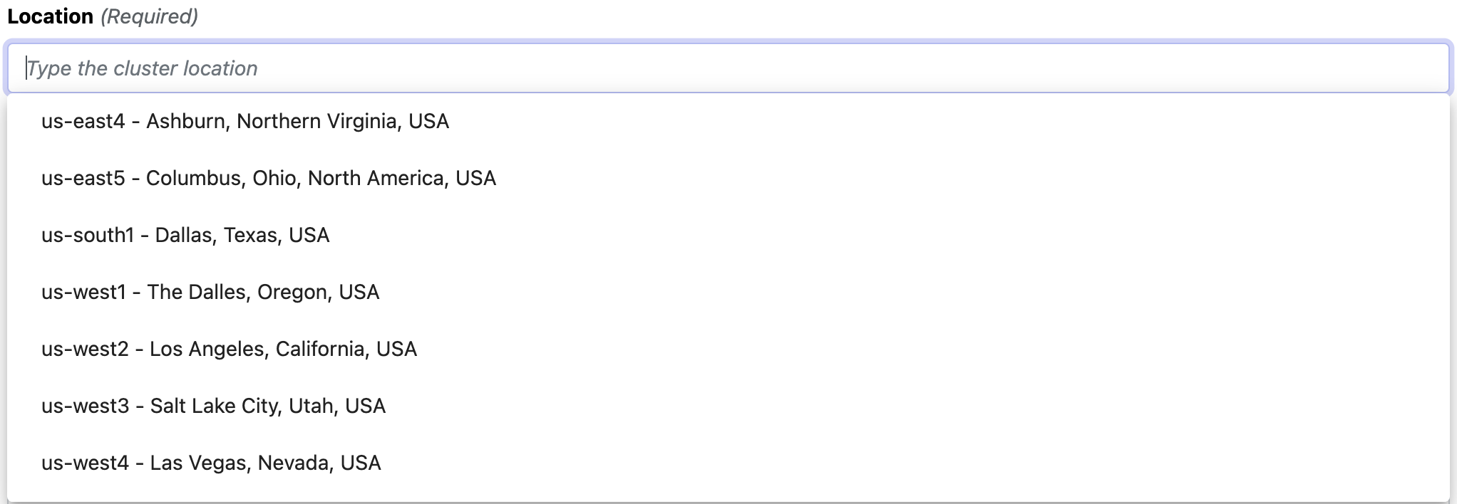 Seqera Platform's auto-completion only shows regions. You should manually edit this field if you're using a zonal GKE cluster.